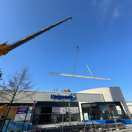 Aujourd’hui ont eu lieu le levage et la pose des 8 tonnes de charpente métallique, pour la piscine d’Aulnoye-Aymeries 🏊🏼♀️